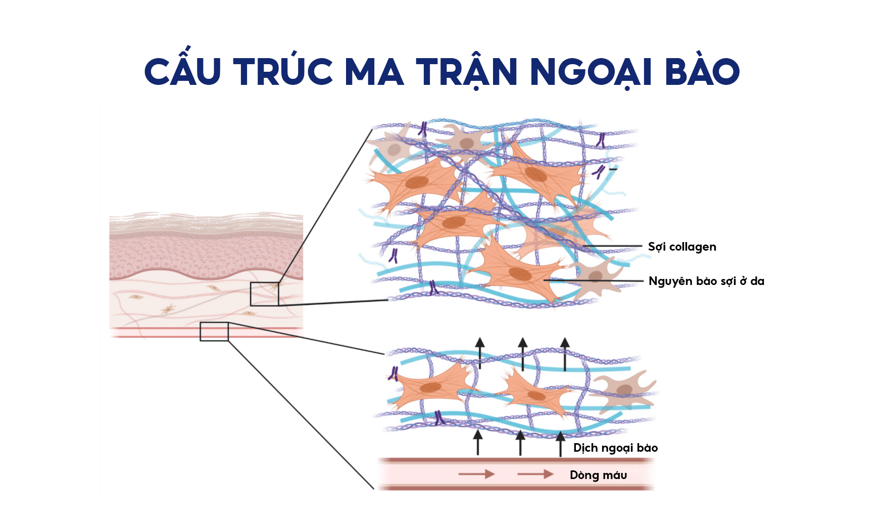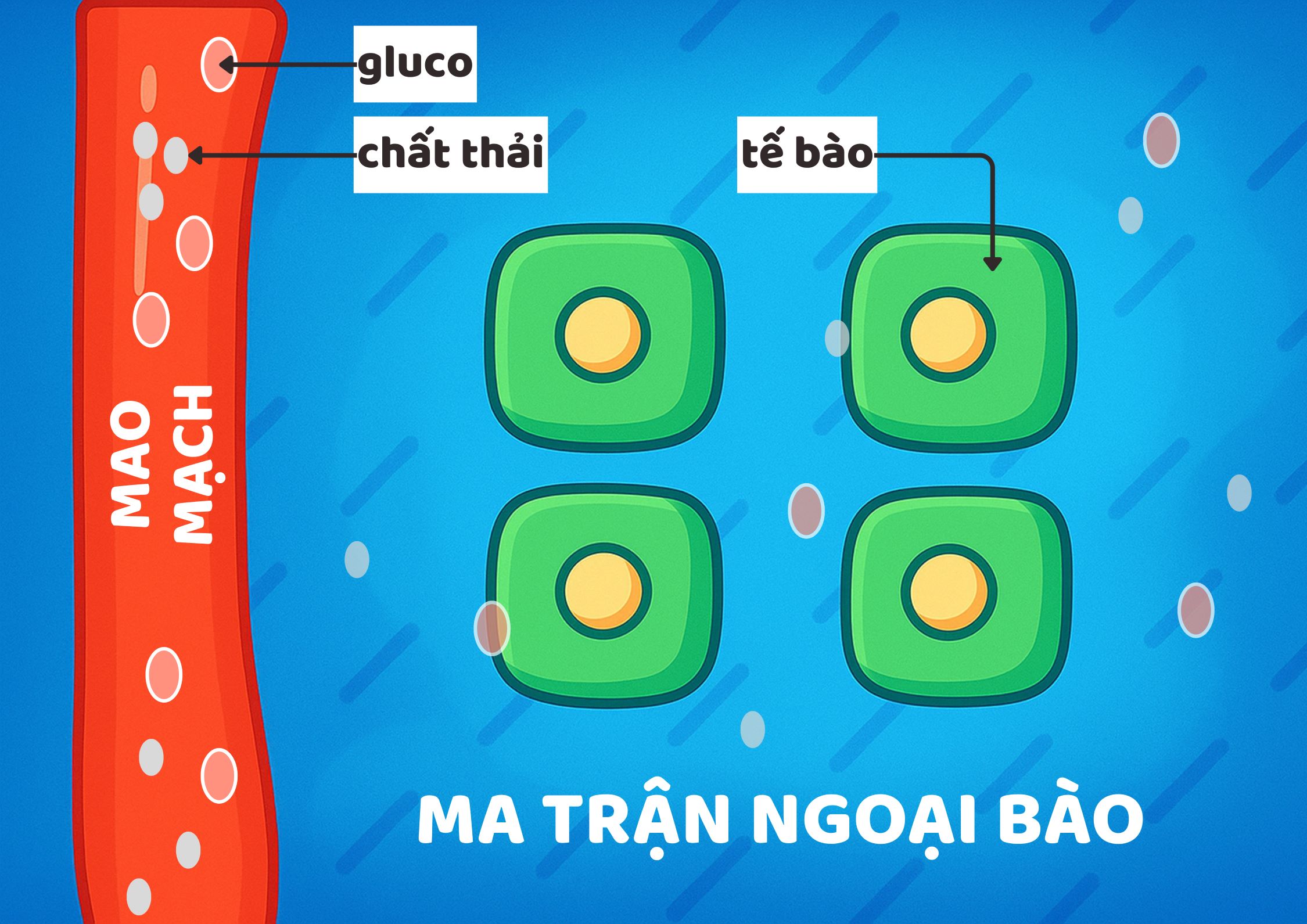 Ma trận ngoại bào là vùng đệm giữa mao mạch và tế bào.